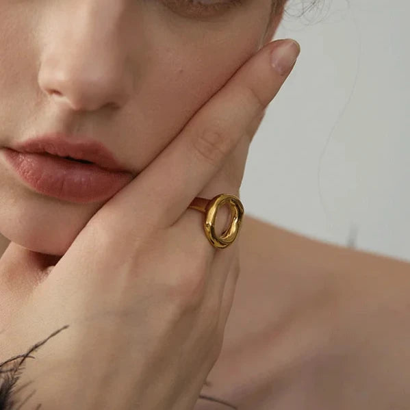 Anel Banhado em Ouro 18k Minimalista Geometria Orgânica